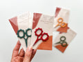 These tiny flower scissors are ideal for various needlework uses such as: hand embroidery, cross stitch, sewing, quilting, crochet, knitting, and more. They are a fun accessory and a great little tool to have in your project bag or craft area. Available in 3 bright colors: - moss - lake - cranberry. They are a perfect addition to any maker’s scissor collection and make a lovely gift! These little snips feature short, sharp blades and measure just 2.5 inches.