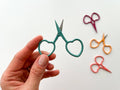 These adorable tiny heart scissors are the perfect tool for all your needlework projects, from hand embroidery, cross stitch, and sewing to quilting, knitting, crochet, and more. With their sweet heart-shaped handles, they make a charming addition to your craft supplies while still being functional.